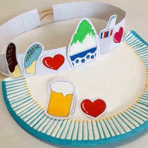 自分の店の食券と、むすめの店のサンバイザーを作りました。部屋の飾り付けを済ませ、後は看板を作ります。