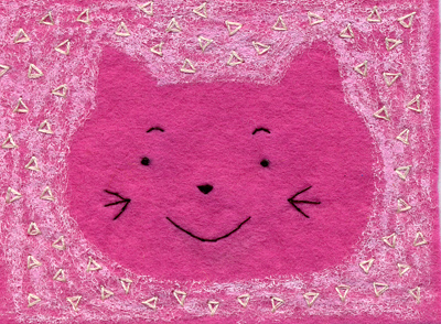 ねこです。フェルトに、ポスカと刺繍で描きました。