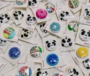 たくさん作ったくるみボタンの行く先がないので、個展に来てくださった方に一つずつプレゼントしようと思っています。(模様や色や絵柄は何が当たるかお楽しみです!)ただ、数に限りがありますのでなくなり次第、プレゼントは終了とさせていただきます。