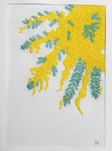 植物をテーマにした企画展に向けて製作をしています。3作目の「ミモザ」が完成しました。こちらもインチの額に額装する予定です。(203×254mm)
