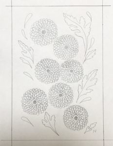 植物をテーマにした企画展に向けて製作をしています。15作目の「スプレーマム」の下絵が出来ました。こちらもインチの額に額装する予定です。(254×203mm)