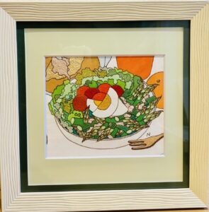 「アスパラサラダ」という絵です。額は25角(250×250mm)です。爽やかな絵になりました。
